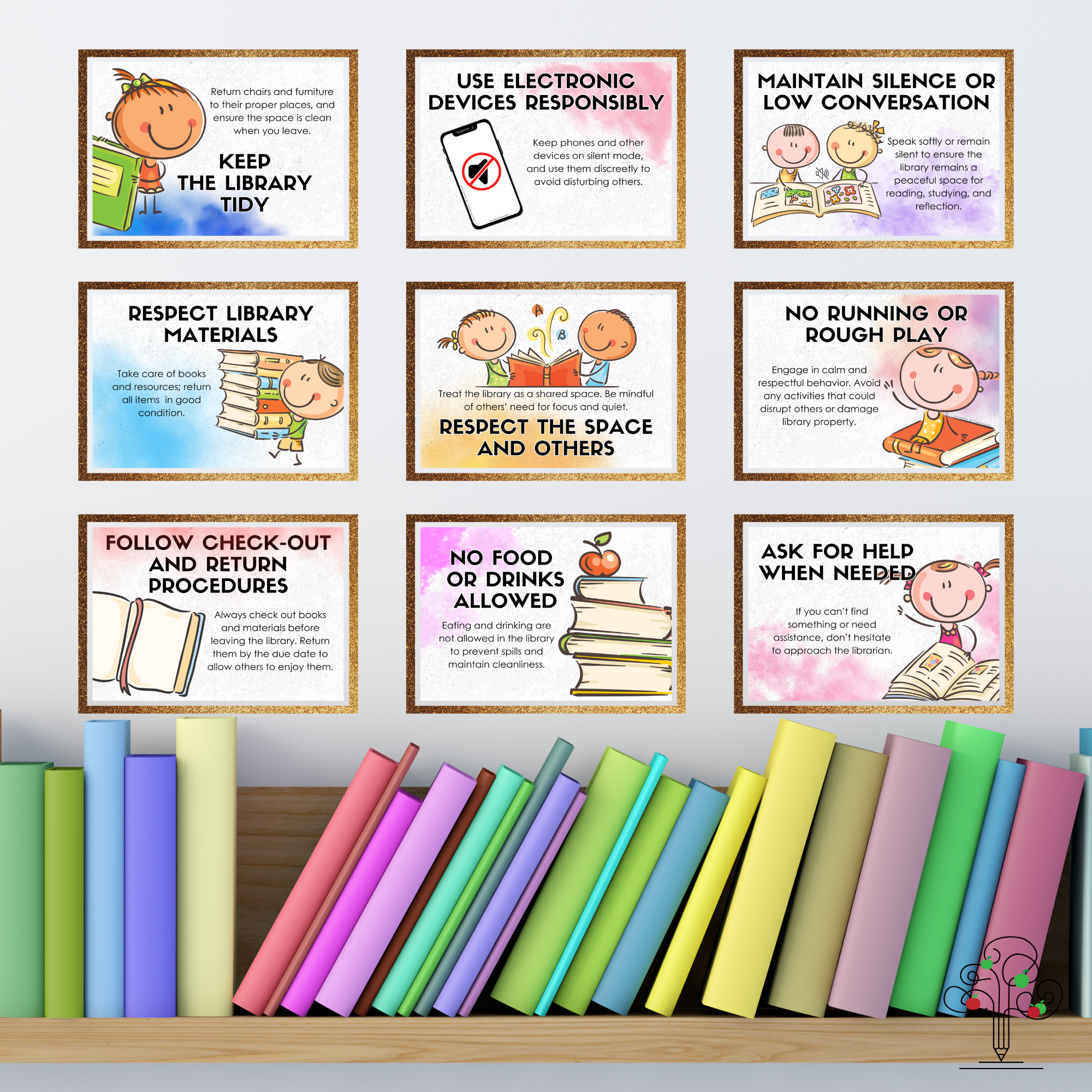 Make your library an inviting and well-organized space with our Engaging Library Rules Posters! Designed for educators and schools, these colorful and informative posters are perfect for promoting positive behavior and creating a respectful environment in your library.